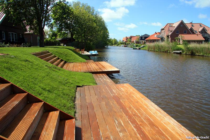 Ihnen steht eine eigene Steganlage mit einem großen Holzdeck zur Verfügung. Hier können Sie Ihr selbst mitgebrachtes Boot anlegen. Bitte informieren Sie sich, ob die Wassertiefe ausreichend ist. Die große Holzterrasse an der Gracht können Sie natürlich auch als Frühstücksterrasse nutzen.